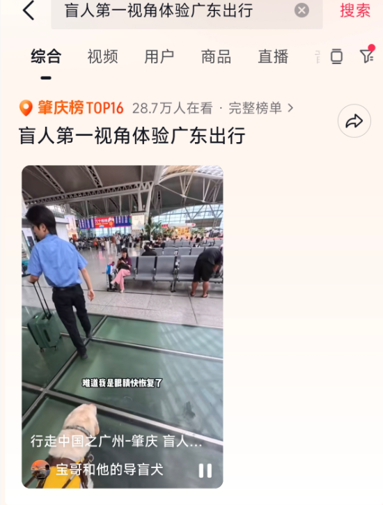 文中图片除标注外来源视频《行走中国之广州-肇庆 盲人宝哥第一视角体验广东出行无障碍的便利》