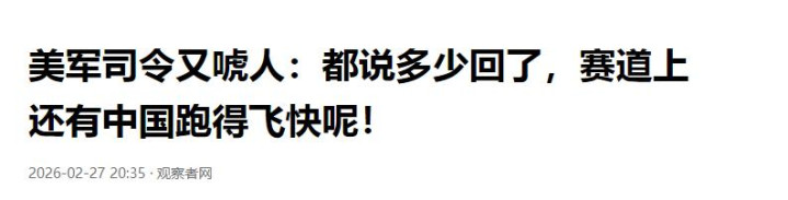 观察者网:2026-02-27:美军司令又唬人:都说多少回了,赛道上还有中国跑得飞快呢!